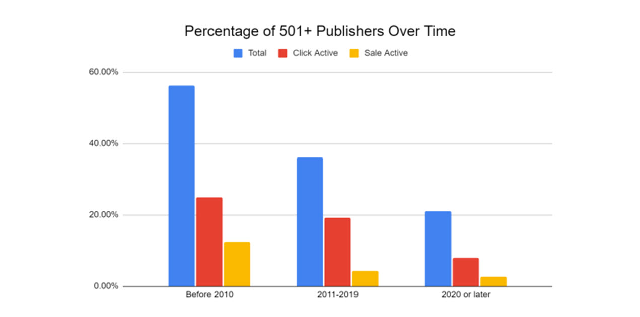 - The majority of affiliate programs have 100 sale active publishers or less in the last 12 months, with almost half responding 50 or less.